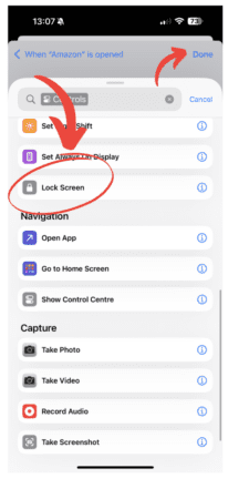 Screenshot of how to use shortcuts to lock apps