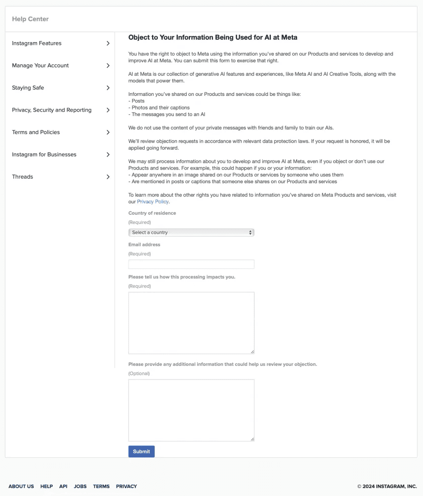 In other parts of the globe, the situation is even more challenging. If users aren’t based in the EU, they’ll have limited options to opt out of their data being used for AI training. While Meta allows some opt-out methods for third-party data usage, these are often not well-publicized.