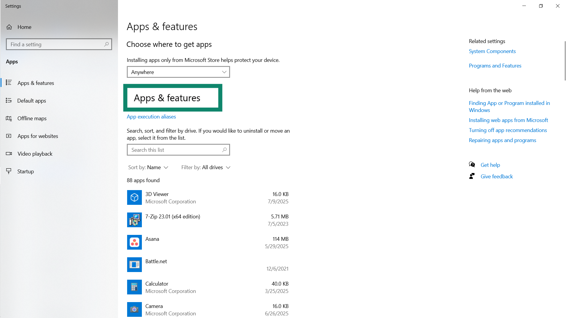 - Open Settings and locate Installed apps (Windows 11) or Apps & features (Windows 10).