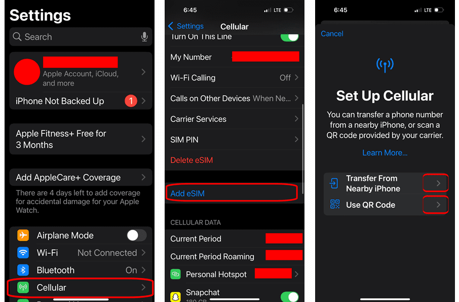 You will also need to decide if you want a phone number attached to the eSIM or simply want to use it to back up your device information (data). Once you have all the information you need, you can follow these basic steps to purchase an eSIM plan and activate it on your device: