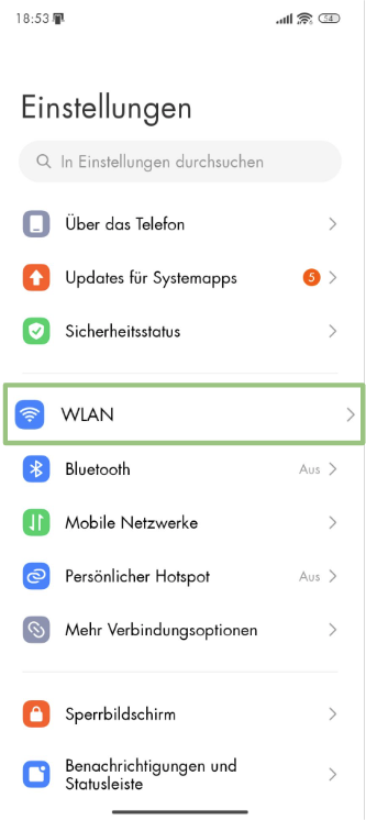 - Öffne die Einstellungen und tippe auf WLAN.