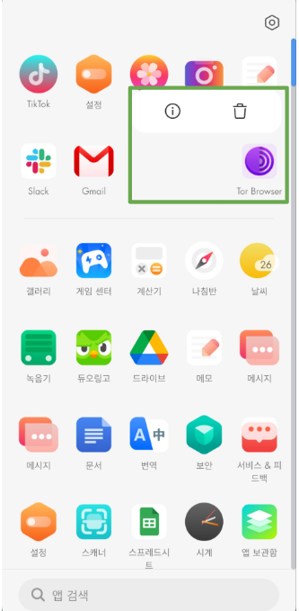2. 아이콘을 길게 누르면 메뉴가 표시됩니다.