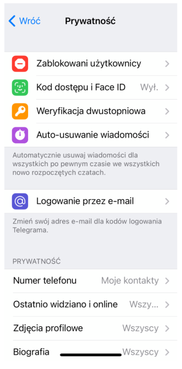 Telegram pozwala kontrolować, kto może zobaczyć Twoje dane osobowe.
