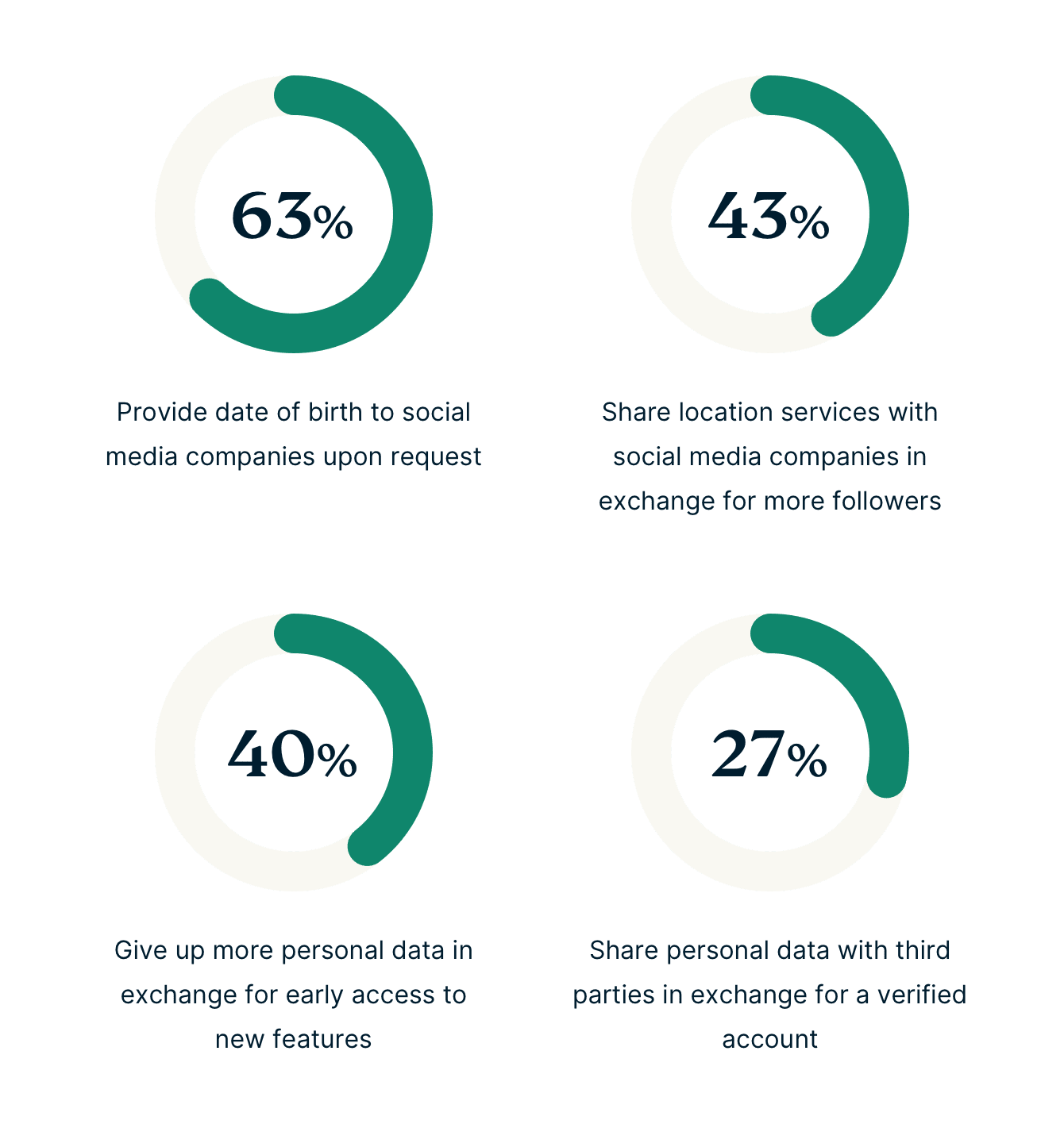 Generation Z må vara väldigt oroliga över att sociala medieföretag inskränker på deras integritet, men trots det är många villiga att uppge personuppgifter i utbyte mot berömmelse på sociala medier, fler följare eller tillgång till nya funktioner.