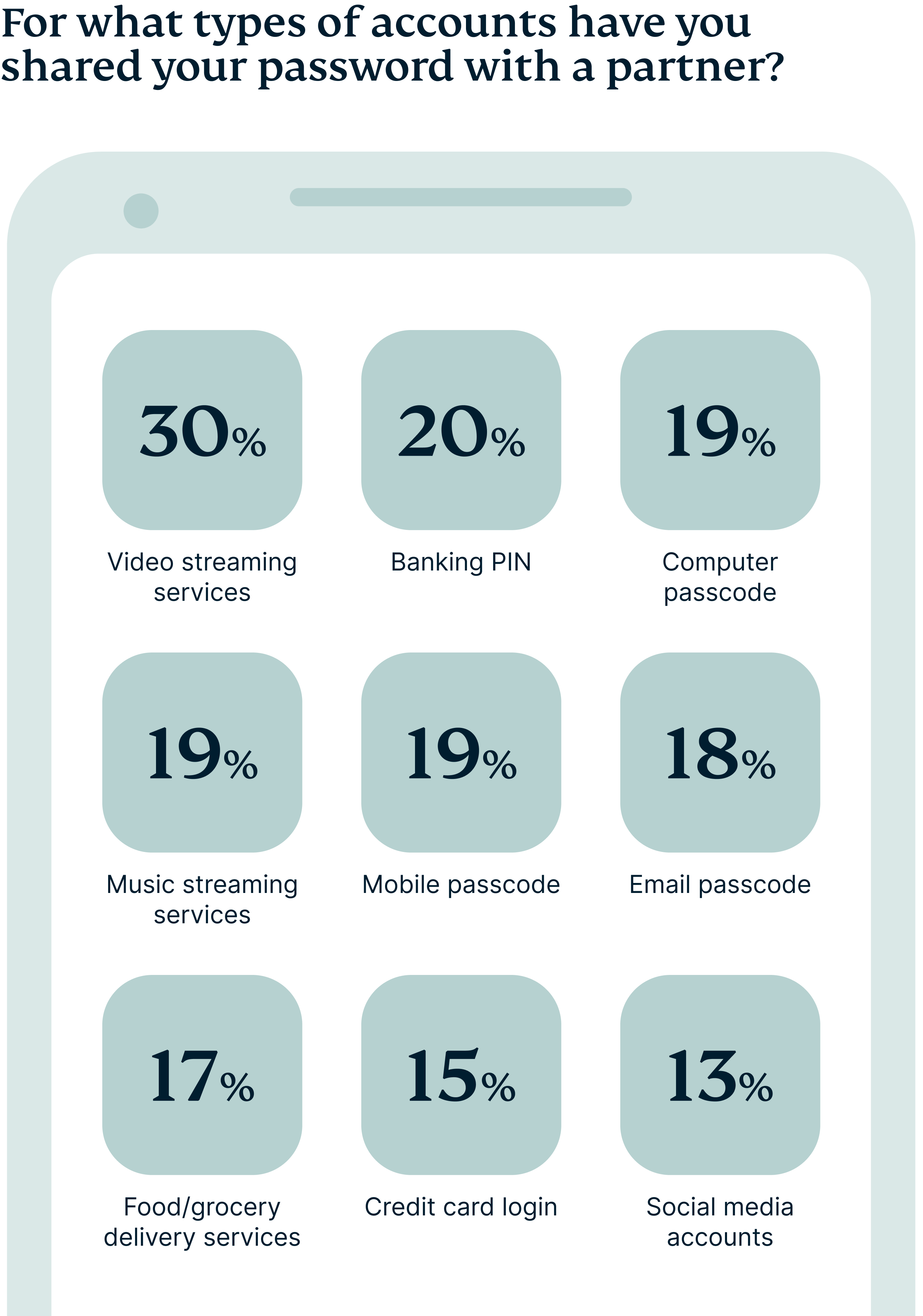 Based on our overall data, many seem to prefer to take the risk of sharing passwords for the relationship benefits. But this decision should be considered carefully, and action should be taken if the relationship ends.