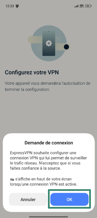 - Autorisez ExpressVPN à paramétrer des connexions VPN quand on vous le demande.