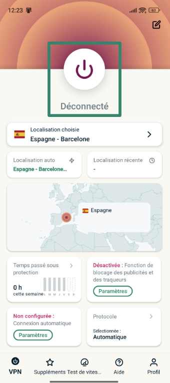 - Appuyez sur le bouton Connexion auto pour vous connecter à un serveur et masquer votre adresse IP.