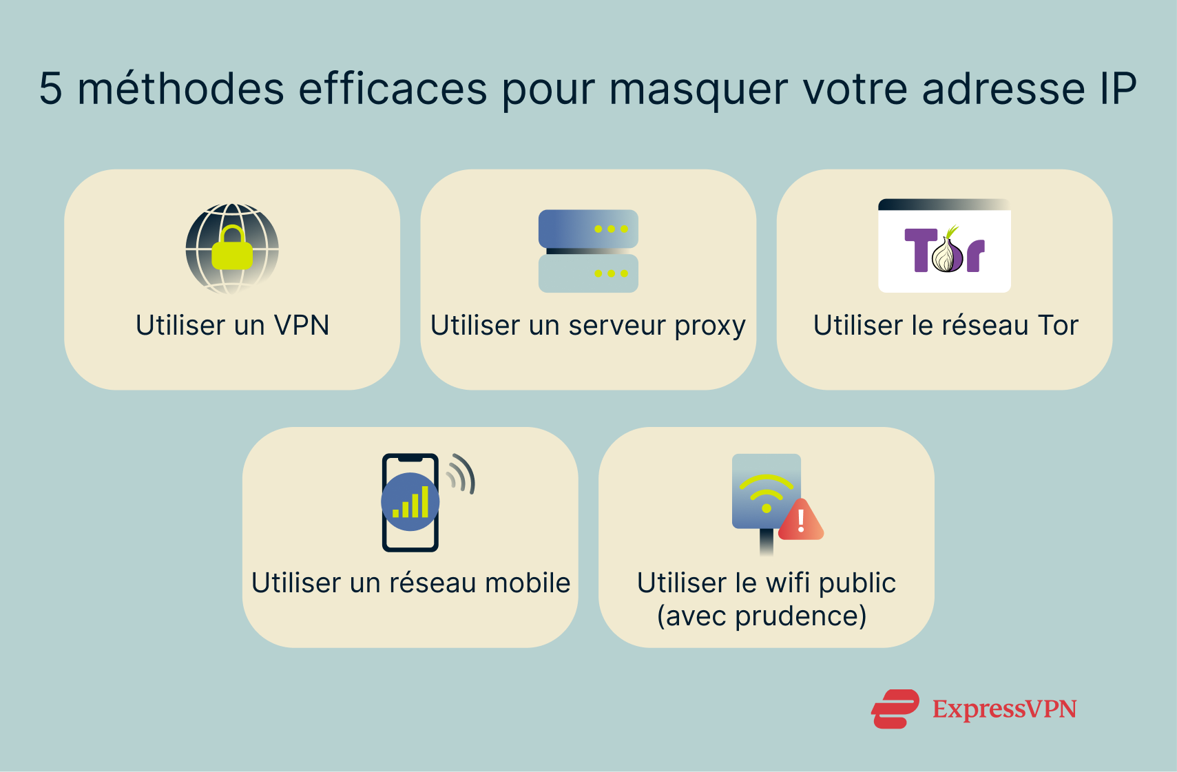 Il existe plusieurs manières de cacher votre adresse IP et elles ont toutes des avantages et des inconvénients. Vous trouverez ci-dessous la liste des méthodes que vous pouvez utiliser pour protéger votre identité en ligne.