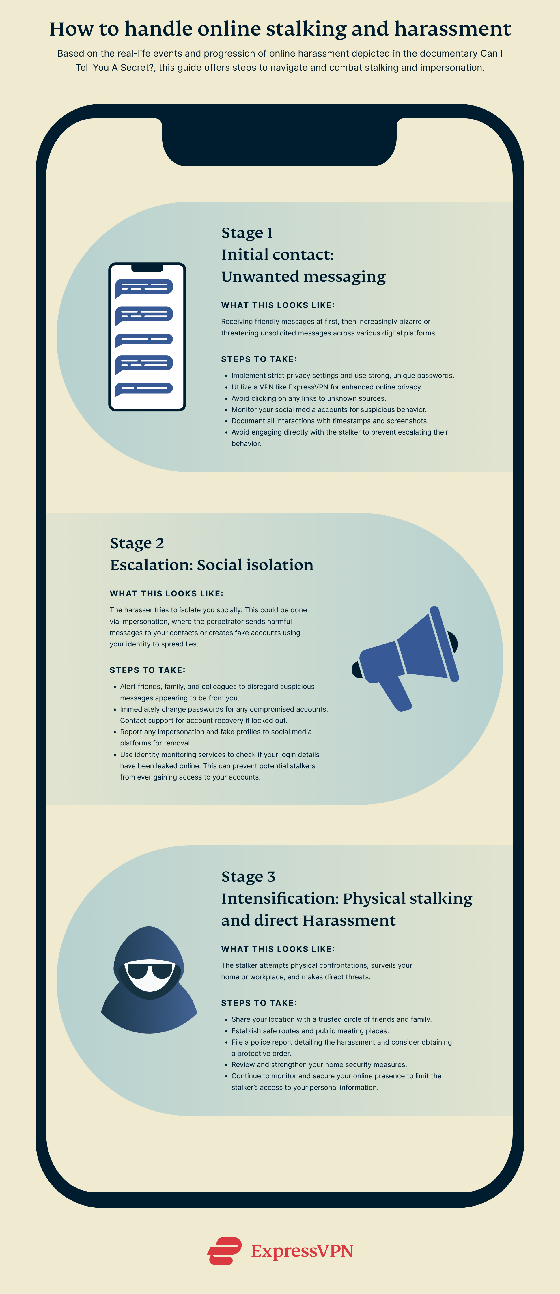En réponse aux histoires de ces victimes et aux préoccupations croissantes mises en lumière par ces deux séries, nous avons élaboré ce guide avec l'aide de Cherlynn Cha, expert en cybersécurité chez ExpressVPN, qui propose des mesures pratiques pour vous protéger contre les abus numériques.