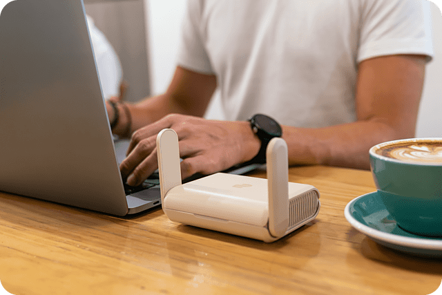 *Räckvidd och prestanda beror också på din internetleverantör, enhetsanvändning, hemlayout, byggmaterial, hinder och andra faktorer. **VPN-funktionalitet kräver en aktiv ExpressVPN-prenumeration som säljs separat. Aircove/Aircove Go utför vanliga routerfunktioner utan ett VPN-abonnemang. ^En exklusiv Aircove Go-funktion som låter dig ansluta till internet via ett annat wifi-nätverk istället för att använda en Ethernet-kabel. Stöder wifi-krypteringsprotokollen WPA, WPA/WPA2-Personal, WPA2/WPA3-Mixed och WPA3. Fungerar inte med WPA2/WPA3-Enterprise eller WEP.