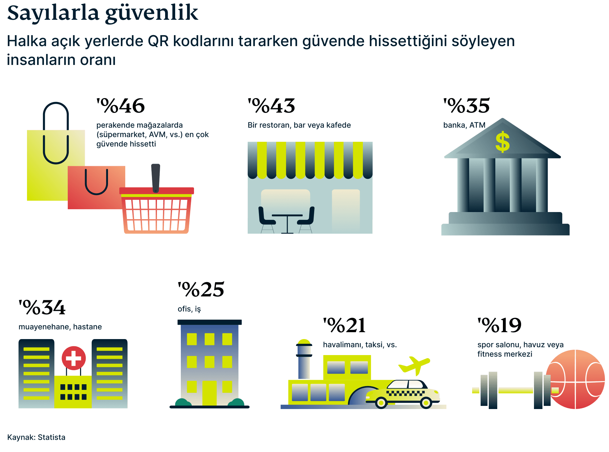 İlginç bir şekilde, endüstri içerisinde QR kodu üzerinden giderek artan finansal dolandırıcılıklara rağmen, insanlar yine de süpermarketlerde ve restoranlarda QR kodu tarama konusunda güvende hissediyorlar. Ancak, spor salonlarında veya seyahat sırasında QR kodlarını tararken çok daha az güvende hissediyorlar.